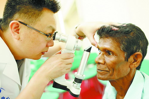 2014年9月中旬,以廈門眼科中心張廣斌副院長、毛祖紅副主任醫(yī)師和李立梅博士為主刀醫(yī)師的醫(yī)療專家組,遠赴斯里蘭卡首都科倫坡為當?shù)鼐用衩赓M實施了1006例白內(nèi)障手術。這是中斯1600多年交往史上,有中國醫(yī)療專家在斯里蘭卡開展醫(yī)療活動,也是接受角膜饋贈的外國醫(yī)療隊頭一次給他們回饋。