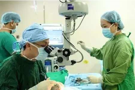 ▲白內(nèi)障專科學(xué)科帶頭人張廣斌為患者手術(shù)