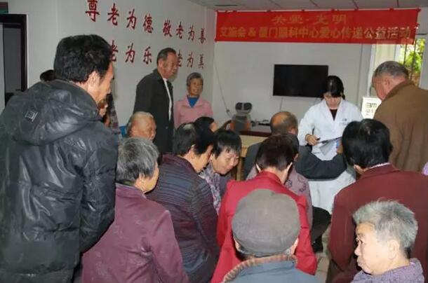 這一幕發(fā)生在4月27日,“關(guān)愛(ài)• 光明”艾施會(huì)攜手廈門(mén)眼科中心,愛(ài)心傳遞公益活動(dòng)中。當(dāng)天雖然下著小雨,但澳溪村老人活動(dòng)中心內(nèi)還是擠滿了人。
