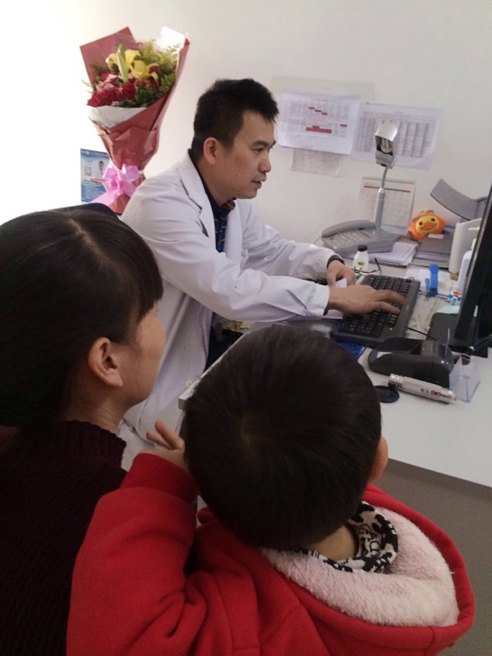 “謝謝莊醫(yī)生,真的感謝你那天中午剛做完手術(shù)沒顧上吃飯還給我孩子做檢查看眼睛,辛苦你了。“這天,一位患兒的家長將一束鮮花送到我院斜視與小兒眼科莊建福副主任醫(yī)師手中,并連聲道謝。