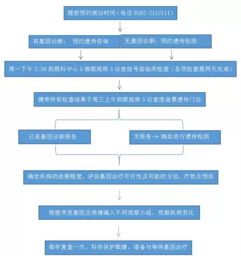 為了既滿足患者需求又提升門診效率,龐教授優(yōu)化就診流程,“凡預(yù)約周三上午眼遺傳病門診的患者,需提前在周一下午2:30到院,進行需要兩天才能完成的包括眼底照相,OCT,ERG,VEP,光敏感度/視野等各項檢查。周三上午拿著檢查結(jié)果及基因檢測報告進行龐教授的門診咨詢。”這樣更有利于在現(xiàn)場當面對患者的病情做出評估,以滿足患者希望盡快了解自己病情及治療可能性的需求,也可以免去門診中途再去做各項檢查的時間。