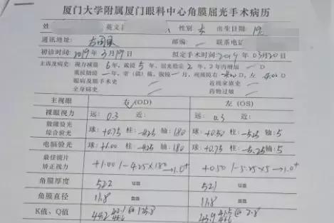 “去了好幾家醫(yī)院檢查,醫(yī)生都說這么高的散光度應該是天生的,要想一次性解決散光困擾,可以通過做近視激光手術。但是像我這么高的散光,他們也沒有太大的把握,紛紛表示不敢做,建議另尋高明。”小林回憶說。