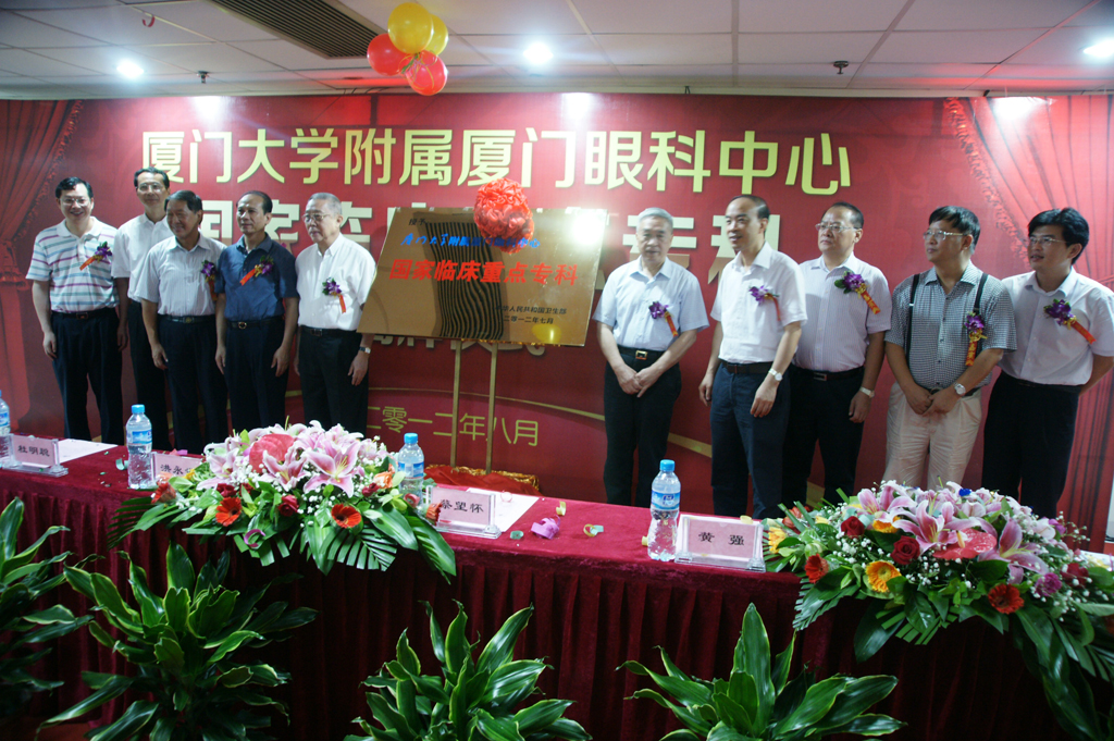 2012年8月18日,在廈門(mén)市市委、市政府、市衛(wèi)生局等的大力支持下,廈門(mén)眼科中心舉辦了隆重的揭牌儀式。原廈門(mén)市委書(shū)記洪永世、原廈門(mén)市政協(xié)主席蔡望懷、廈門(mén)市人大常務(wù)副主任杜明聰、廈門(mén)市人民政府副市長(zhǎng)黃強(qiáng)、廈門(mén)市政協(xié)副主席潘世建、廈門(mén)市衛(wèi)生局黨組書(shū)記、局長(zhǎng)楊叔禹、廈門(mén)大學(xué)副校長(zhǎng)賴虹凱、廈門(mén)市人民政府辦公廳副巡視員蔡偉中等市領(lǐng)導(dǎo)出席了揭牌儀式。儀式上,廈門(mén)眼科中心董事長(zhǎng)蘇慶燦先生向與會(huì)嘉賓介紹了廈門(mén)眼科中心近幾年突飛猛進(jìn)的發(fā)展歷程,從1997年成立至今,經(jīng)歷15年的發(fā)展與積淀,目前,該院已成為“福建眼科領(lǐng)跑者”,是福建眼科的一面旗幟,在多個(gè)領(lǐng)域處于全國(guó)先進(jìn)水平。2011年,該院70%以上的病人來(lái)自于廈門(mén)以外的地區(qū),3%來(lái)自于國(guó)外,主要業(yè)務(wù)指標(biāo)均居全國(guó)同行排名靠前。