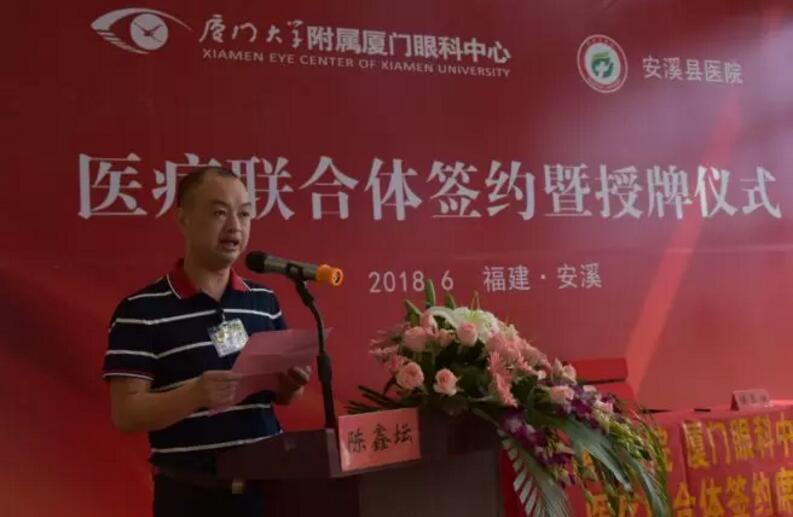 廈門眼科中心侯家敏院長在致辭中提到,廈門眼科中心這次來到安溪,和安溪縣醫(yī)院合作共建醫(yī)療聯(lián)合體是響應國家號召,深化醫(yī)藥、衛(wèi)生體制改革的舉措,也是廈門眼科走出廈門,主動為眼疾患者服務的一次嘗試,希望盡一己之力緩解安溪縣市民“看病難、看病遠、看病貴”的問題。