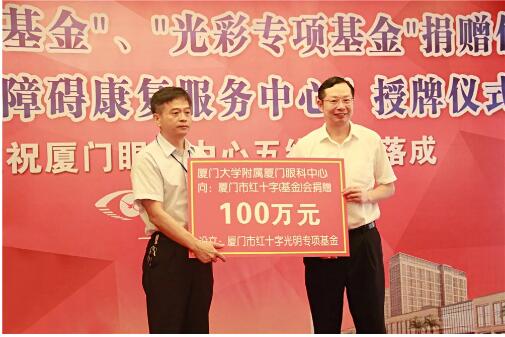 2016年7月21日,廈門大學(xué)附屬廈門眼科中心向廈門市紅十字基金會捐資100萬元,設(shè)立廈門市紅十字會(基金會)光明專項基金。在廈門紅十字會的指導(dǎo)支持下,廈門大學(xué)附屬廈門眼科中心派出專業(yè)醫(yī)療組深入到全市各個居委會或村部,以防盲宣教及普查的方式,為廈門人民進(jìn)行眼疾篩查,并幫助患者及時治療,特別針對貧困的眼疾患者,基金提供必要的手術(shù)冶療費(fèi)用救助,減輕貧困患者的經(jīng)濟(jì)負(fù)擔(dān),幫助他們恢復(fù)光明。自基金成立以來,廈門眼科中心已捐資200余萬,為300萬余人次進(jìn)行篩查眼疾,已救助近800名貧困眼疾患者。