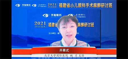 北京大學(xué)國(guó)際學(xué)院麻醉科主任姚蘭教授致辭。姚蘭教授表示十分榮幸受邀參加由廈門眼科中心主辦的此次小兒眼科麻醉研討會(huì)。姚蘭教授多次參與廈門眼科中心早產(chǎn)兒