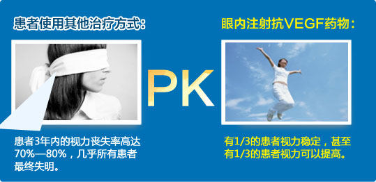 濕性老年性黃斑變性患者中心視力迅速喪失,嚴(yán)重的可在2~3個月內(nèi)失明,目前沒有有效的治療的方法,濕性老年性黃斑變性是抗VEGF藥物的治療適應(yīng)癥。