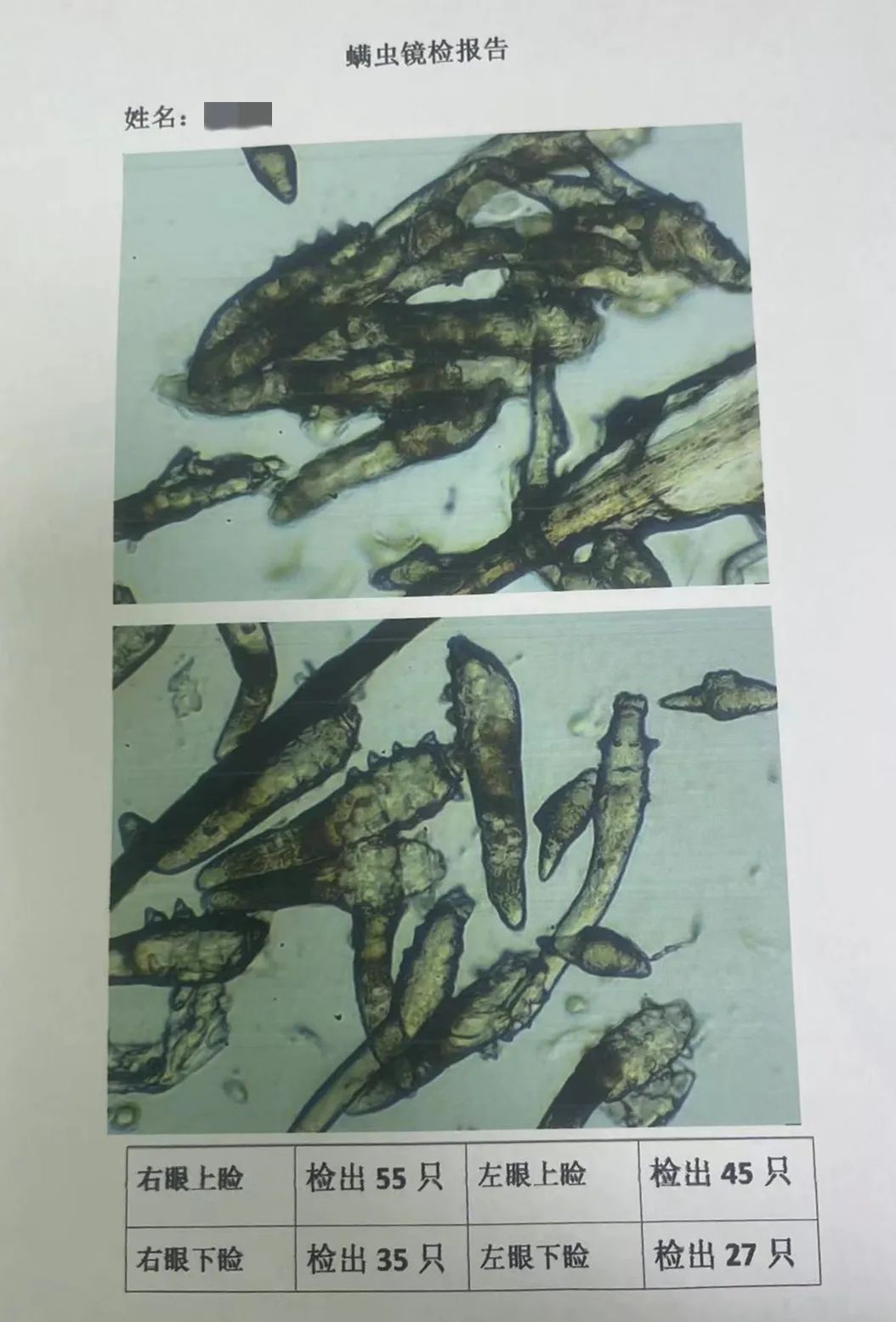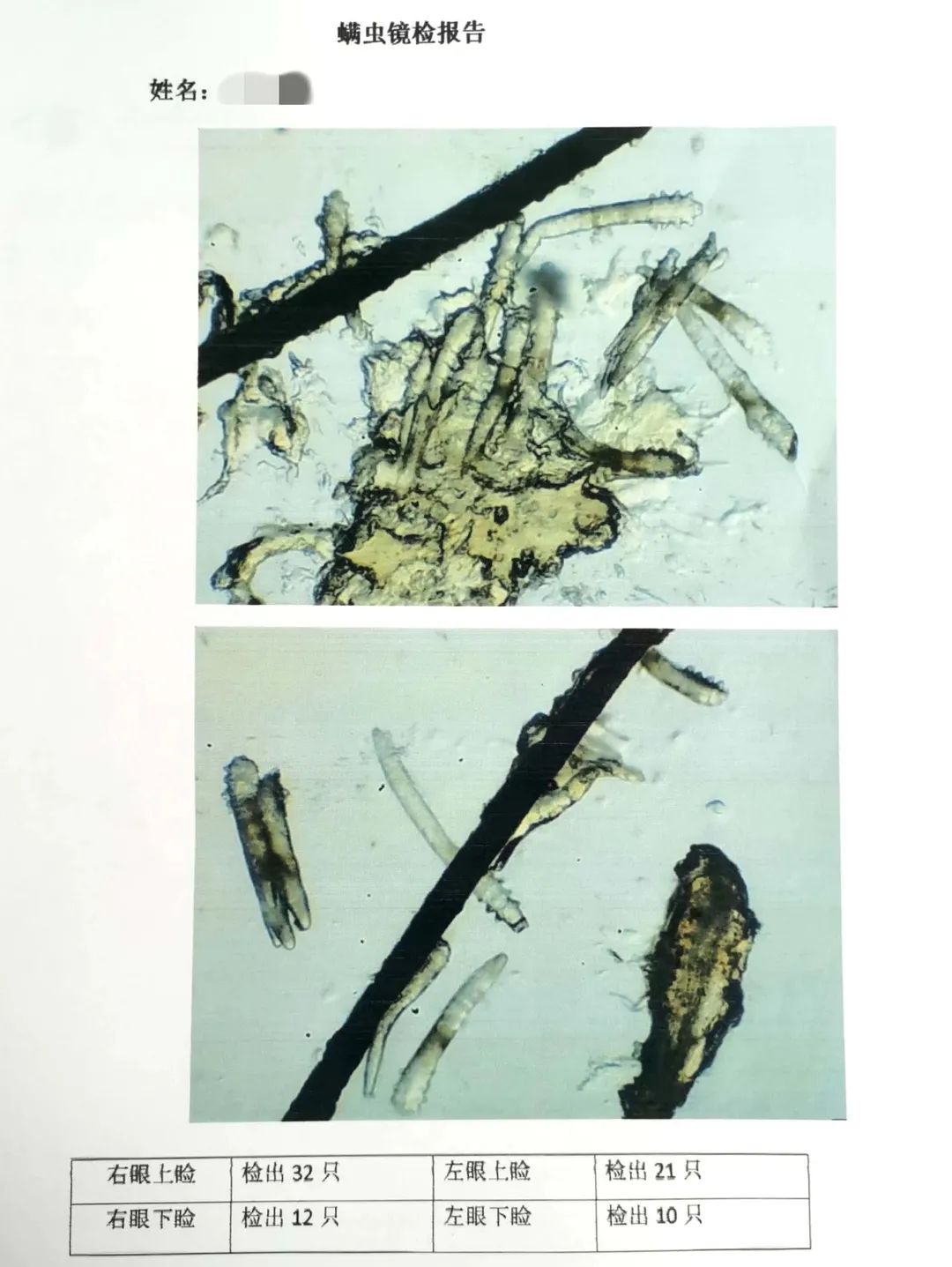 在檢查的時(shí)候,醫(yī)生要在每個(gè)眼瞼上拔出三個(gè)比較典型的睫毛,然后放在光學(xué)顯微鏡下,尋找有沒(méi)有螨蟲。